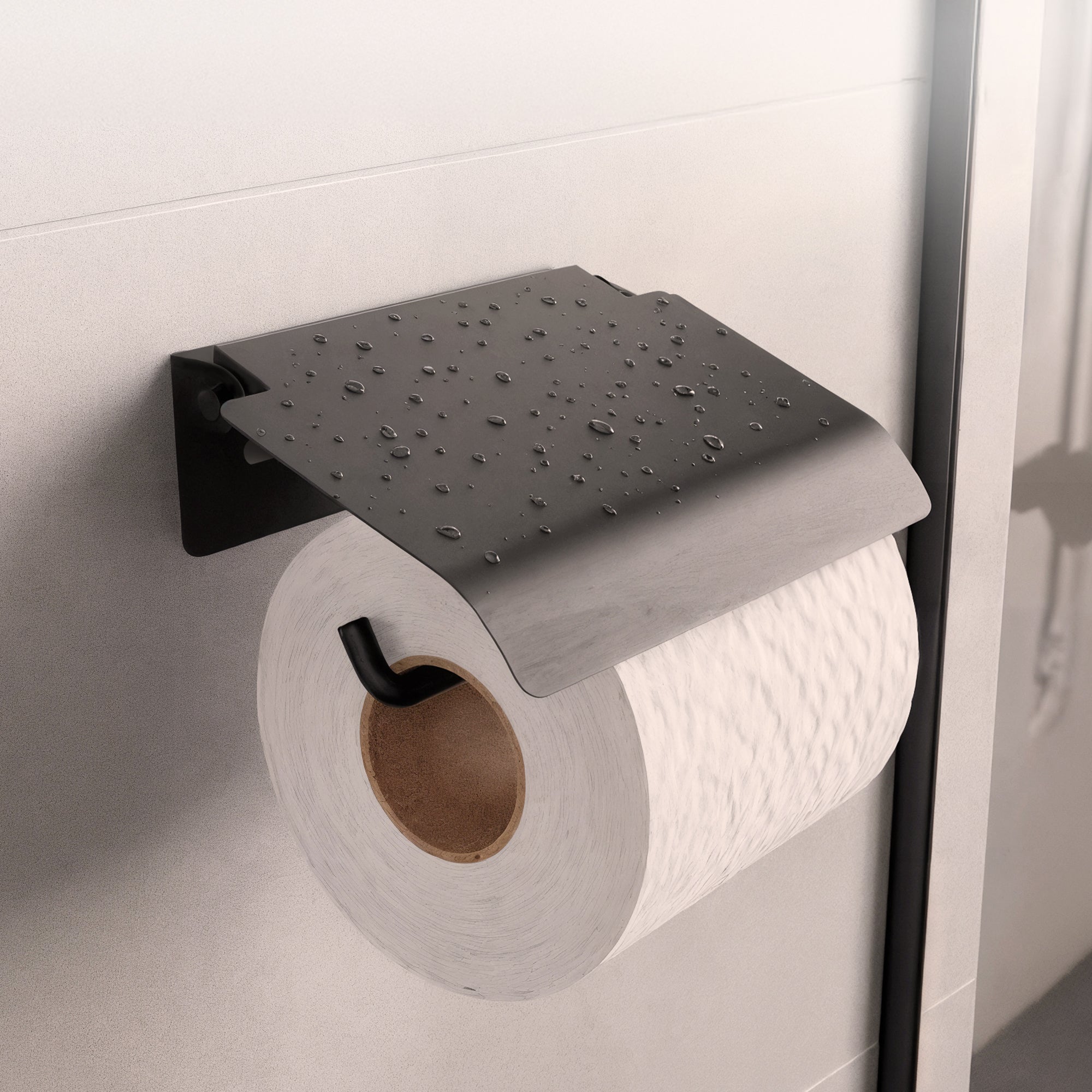 The integrated cover protects the toilet roll from splashes and moisture while adding light resistance. This helps prevent the roll from unrolling by itself and keeps the paper neat and controlled during use.