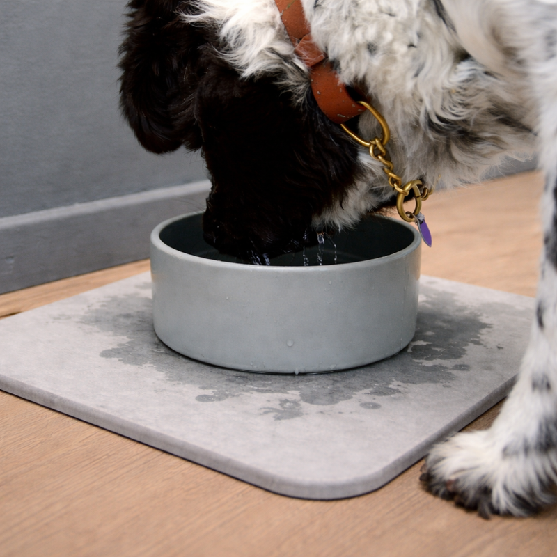 Hecho con una base de piedra de secado rápido que absorbe agua al contacto. Diseñado para mantener el área alrededor del tazón de su perro seca, limpia y libre de desorden.