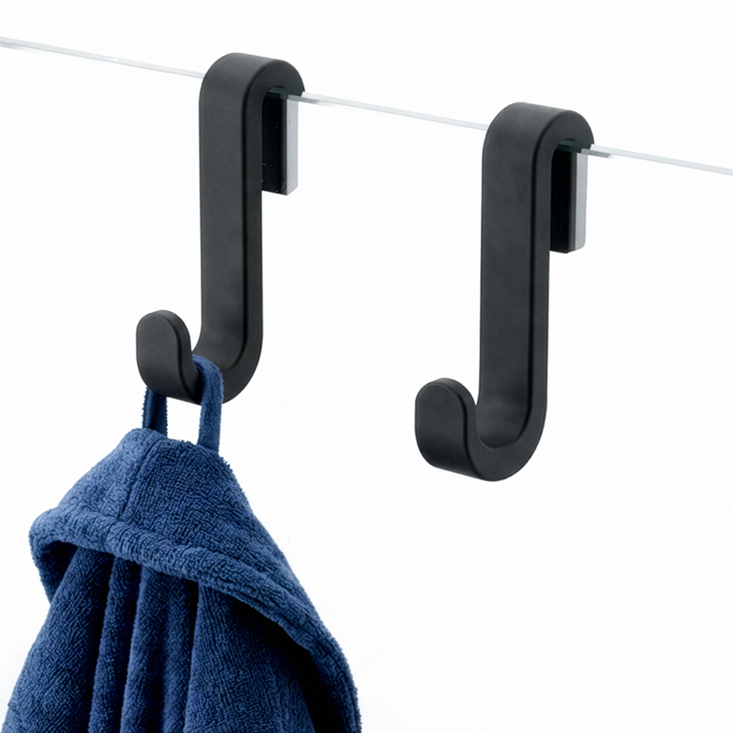 Il set di 2 ganci per porta doccia Minismus risolve il problema di appendere asciugamani e accessori in spazi ridotti senza danneggiare il vetro della doccia. Progettati per inserirsi facilmente su porte con spessore da 6 a 10 mm, offrono un'installazione sicura senza bisogno di attrezzi.